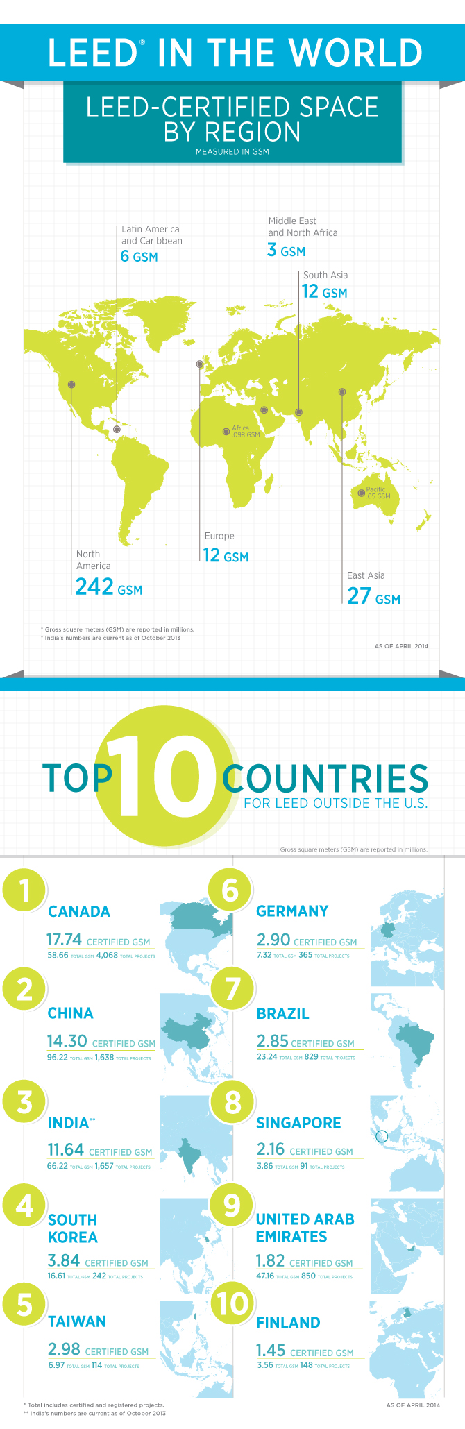 The top ten countries together, represent 61 million gross square meters of LEED-certified space. That’s an increase of 41% from last year.