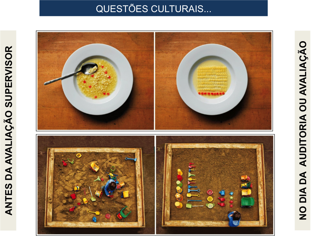 Vejam como exemplo os processos de auditoria interna ou externa; enquanto existem preocupações por aqui para arrumar a casa às vésperas das visitas, para que o processo seja bem visto através dos auditores, nos deparamos lá fora com a visão de que processos de auditoria têm por objetivo ajudar na correção, no ajuste e na melhoria de processos.