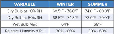 The conditions outlined in the table are guidelines from the standard that satisfy the thermal comforts required by the standard.