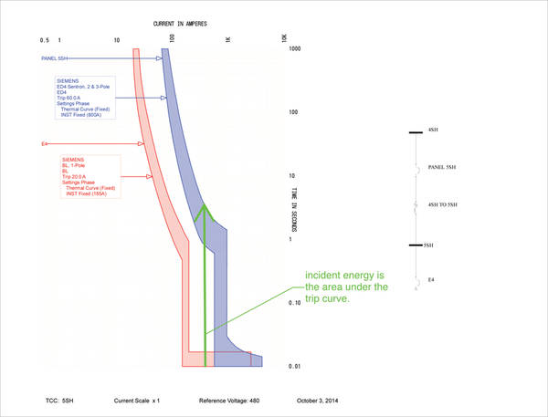 The first step in mitigating arc flash hazards in a facility is to develop an understanding of what it is, where the hazards are, and to what level they exist. A basic understanding of how an arc flash occurs and some of its causes is required. Simply put, arc flash incident energy is the amount of energy measured in calories per square centimeter that can be emitted in an arcing situation until the overcurrent protection devices (OCPDs) open to clear the fault (see Figure 1). Its two main components are arcing fault current and the amount of time it is allowed to exist. Mitigation should work to minimize arcing fault current and time. It is not necessarily the areas in your electrical system with high arcing fault current that are the most dangerous, but the slightly lesser arcing fault current that is allowed to propagate for a much longer time that can be the most dangerous condition.