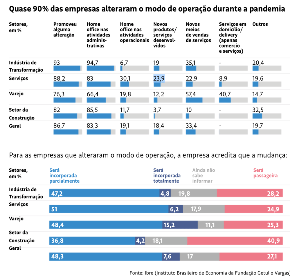 Hoje pela manhã me deparei com uma interessante matéria na Folha intitulada “Mais de 50% das empresas manterão mudanças adotadas na pandemia” abordando justamente esta questão, embasada em uma pesquisa recente promovida pelo Ibre / FGV.