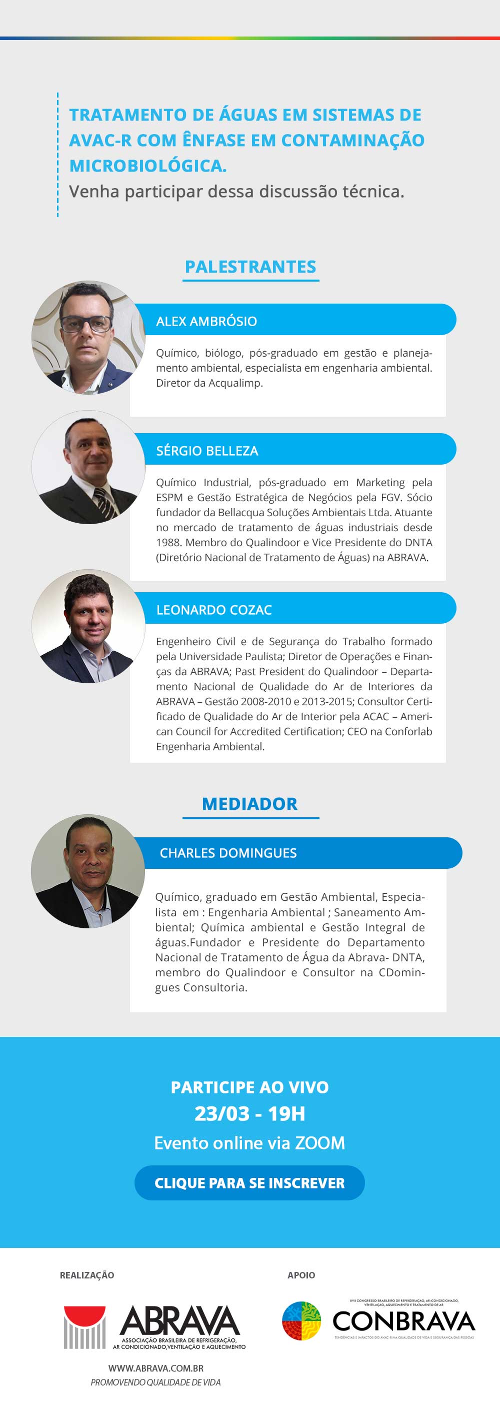 ABRAVA realizará no próximo 23/03 as 19:00hs o Webnar sobre “Tratamento de Águas em Sistemas de AVAC-R, com ênfase em contaminação microbiológica