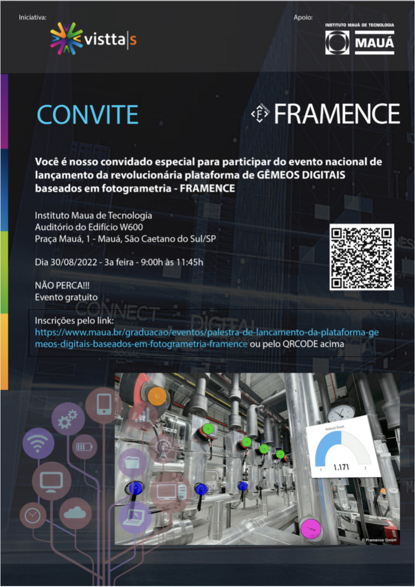 O Instituto Mauá de Tecnologia realizará nesta próxima terça-feira 30/08 no período da manhã uma apresentação da plataforma FRAMENCE, cujo tema será a fotogrametria.