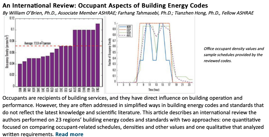 A ASHRAE divulgou recentemente através de seu ASHRAE Journal Podcast um estudo conduzido por alguns de seus membros (By William O’Brien, Ph.D., Associate Member ASHRAE; Farhang Tahmasebi, Ph.D.; Tianzhen Hong, Ph.D.), através do qual analisaram 23 diferentes regiões do planeta e seus respectivos códigos / diretrizes locais para construções eficientes, no tocante a como estes códigos levavam em consideração a importância e influência do número, cultura e características de ocupantes em edifícios, para a operação e performance do edifício.